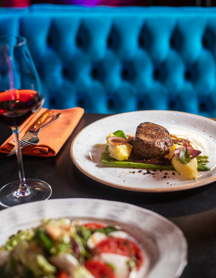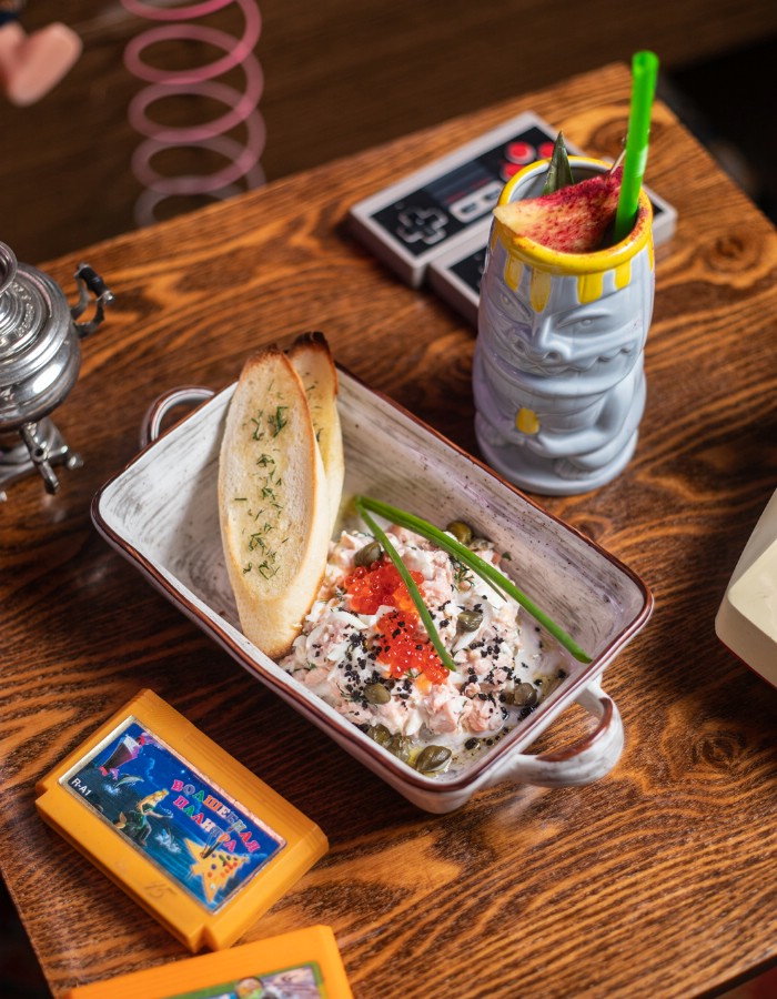 - Кухня и бар. От простых закусок до сытных горячих блюд. Меню не ограничивается стандартными вариантами. В барной карте собраны классические напитки и редкие сорта алкоголя. Присутствуют позиции для тех, кто предпочитает безалкогольные вечеринки.